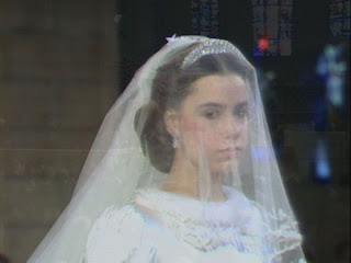 Marie-Astrid (left) was married a year after her brother, in February of 1982, and Margaretha (right) was married in March of 1982. Lovely though these two ladies are, I think the volume and ruffle-age on their gowns shows the pay off of the relative restraint of Maria Teresa's design over time.