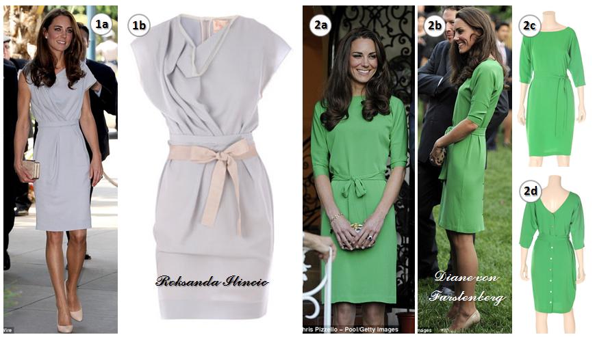 2. Attending a reception, 8 July, a) and b) on Kate, and c) the front, d) the back of the dress from Diane von Furstenberg, carrying a leopard print clutch by DVF and in nude shoes.